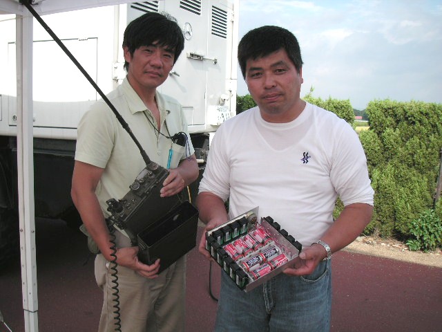 屋外集会の報告 平成19年10月8日(日)兵庫県加古郡稲美町、加古大池にて参加者は13名でした。 私の所から近く、池は周りより高くなっており無線をやるのも良好で当日ノイズは非常に少なく、0900時にスケジュールを組んでいた、神奈川県の山本(JE1KAT)さんと3800Kc LSBでお互い3.5m程度の軍用ホイップでQSOが出来ました。 今後も古谷(JA3DMO)さん主催のMRC( http://www.bm-japan.com/newpage6.htm )で行いたいと思いますので、ご提案等有りましたら宜しくお願いします。 We held an outdoor meeting at a pond side, it located near Kobe. ![]() 参加の皆様 敬称略 後段左より、下司、鳴海、佐藤(JI3VPP)、井上(JO3LAV)、古谷(JA3DMO)、神前(JN3BJO) 前段左より、平野(JH4TYE)、大内、田中(JA4WSH)、木村(JQ2XIF)、大塚(JA3MEV)、善沢(JA3JPR) Top left to right : GESHI, NARUMI, JI3VPP, JO3LAV, JA3DMO, JN3BJO Bottom left to right : JH5TYE, OOUCHI, JA4WSH, JQ2XIF, JA3MEV, JA3JPR ![]() 朝から雨でした、でも好きな事は止められないって感じです。 ![]() 今回はGRC-9関係は5台でした、3800Kc/AMに手ごろだと思います、お持ちの方も多いと 思いますので、ぜひ運用される事を願います。 The angry nine is one of the popular AM mil radio here in Japan. ![]() MT管の交換は真空管抜きが無いと大変です。 JH4TYE is trying to replace the modulator tube. ![]() They brought three Angry nine's, PRC-10, PRC-6's and French TR-PP-11 Behind them is a gas powered generator PE-162 for the angry nine. ![]() 雨避けのカバーの掛かった木箱にはBC-223とBC-342と自作のAC電源がが入っています、 本当はBC-223用ダイナモを使いたかったのですが、入手できずAC電源を自作してRXは本来 AC電源のBC-342を使用しました。 The covered black wooden box (with the Ohio brass) stowed the BC-223 transmitter and receiver BC-342. I operated the radio for the 3800Kc vintage AM net, also operated BC-611 and Angry Nine too. ![]() 私(JA3FTU)はBC-1000改造で運用しました。 本来の40−48Mcの8Mc幅を50-54Mcにした為、ダイアルが100Kc直読でき便利です。反面QRHが目立ち、対策が今後の課題です。 The BC-1000 has been restored to working condition then modified for the 6m ham band. The dial can be read directly, like the CH00=50.0Mc, CH10=51.00Mc, CH11=51.10Mc, CH12=51.20Mc....CH20=52.0Mc....CH30=53.0Mc....CH40=54.0Mc, also can be calibrated on the CH16=51.6Mc, it's 12th harmonics of 4.3Mc. The modification was not so easy, I tried to remove rotors of the main tuning capacitors one by one and found left two was the best result, of course tried at left one however, it was too small capacity. After that, aligned transmitter and receiver's head. I removed the AFC line, it's up to you. ![]() Back pack's waist belt is too short for me. ![]() 平野(JH4TYE)さん力作のPRC-10用電池アダプター、9V用は秋月電子で買われたとか。 完璧な造りです、電池コネクターが付いた面の折り曲げ(単純ではない)は素晴らしかったです。 JH4TYE made a very nice battery adapter for his PRC-10, good job. ![]() ![]() 51.0Mc FM運用の各局 Our cold war net on 51.00Mc, we used different radios, such as BC-1000/SCR-300, PRC-6, PRC-6/6, RT-70/VRC-7,PRC-10, PRC-10A, PRC-77 and TR-PP-11. ![]() 昼頃に雨が上がり、その後日差しが強くなりました。 ![]() 井上(JO3LAV)さんのジープ、上手くセットされており51.0Mc/FM 3800Kc/AMを走行運用されました。 JO3LAV's radio jeep. ![]() |