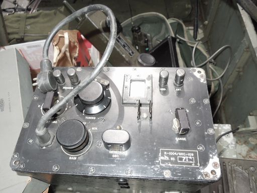 | 写真中央のOD色の鉄製小箱がジョイントボックスです。PRC-77からのオーディオ信号がここでケテルのヘルメットシステムと接続されています。電源は、電池箱内のリチウムバッテリー BA-5598から供給されています。 |