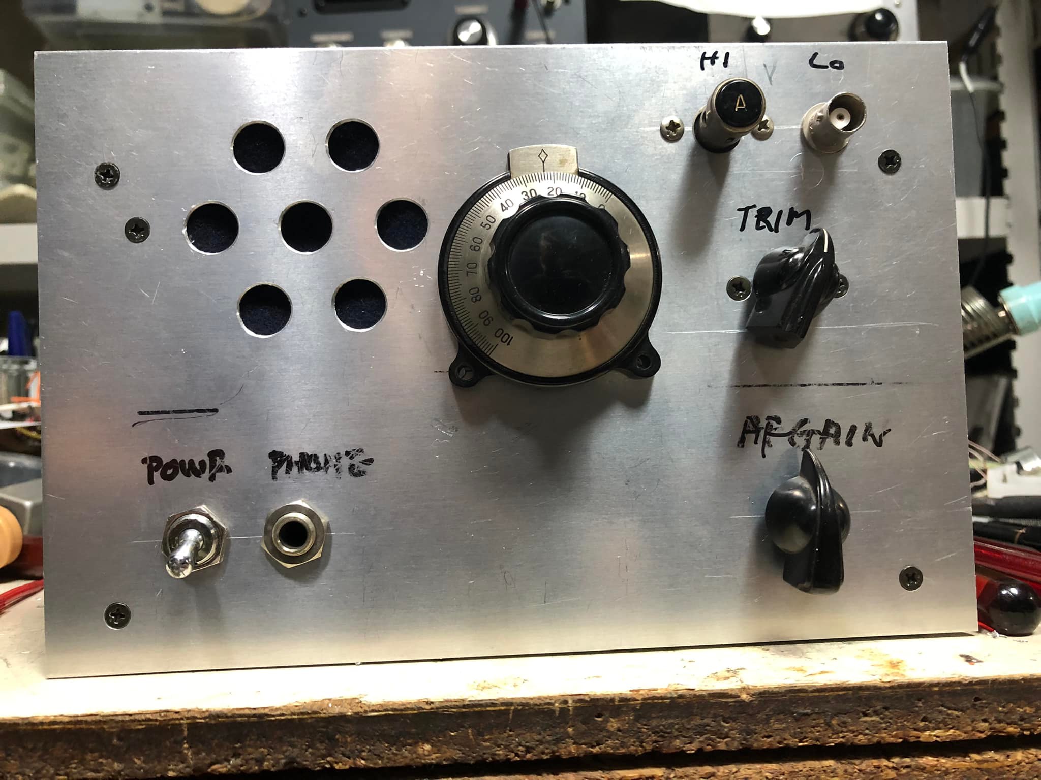 3極5極複合電池管1D8-GT受信機 形は出来た、が感度はイマイチ良くない。耳Sで変調音確認限度がSG入力45dbの状況。先回1tubeに比べ状況良くないのは感度以外に商用電源との接続無い為かもしれない。そこでこんな実験。 シャック内はHFアンテナからの漏洩電界で満ちてる筈。3m程の単線をH -Zアンテナ端子に繋ぎシャーシ本体を商用ラインに繋ぐ(昔の鉱石ラジオアンテナ線を100vソケットの片極に繋ぐ方法)事で充分な実用範囲となる。また、リード線接続を アンテナ端子、商用ラインを逆接続しても状況は同じであった。電界捉える条件は入りと出が必要であること、 やはりポータブルラジオにバーアンテナが主流である事が納得。 |