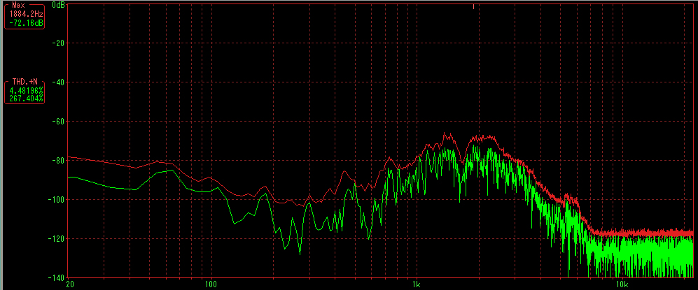 200Hz辺りから1KHzまで伸びてはいますがそれより高い周波数が一様に落ち込んでいます。