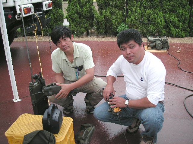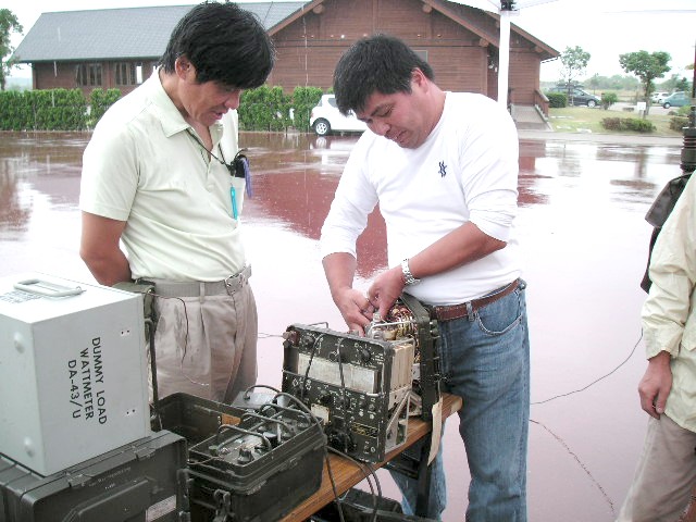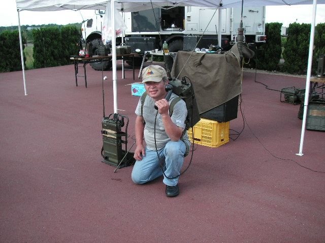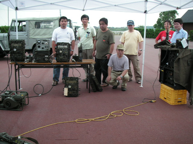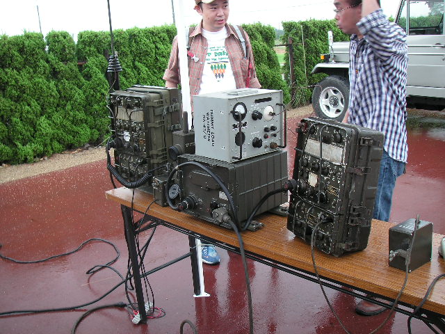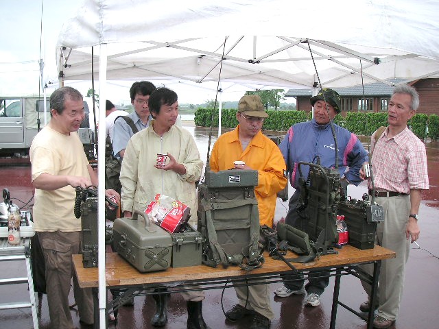 屋外集会の報告 平成19年10月8日(日)兵庫県加古郡稲美町、加古大池にて参加者は13名でした。 私の所から近く、池は周りより高くなっており無線をやるのも良好で当日ノイズは非常に少なく、0900時にスケジュールを組んでいた、神奈川県の山本(JE1KAT)さんと3800Kc LSBでお互い3.5m程度の軍用ホイップでQSOが出来ました。 今後も古谷(JA3DMO)さん主催のMRC( http://www.bm-japan.com/newpage6.htm )で行いたいと思いますので、ご提案等有りましたら宜しくお願いします。 We held an outdoor meeting at a pond side, it located near Kobe. ![]() 参加の皆様 敬称略 後段左より、下司、鳴海、佐藤(JI3VPP)、井上(JO3LAV)、古谷(JA3DMO)、神前(JN3BJO) 前段左より、平野(JH4TYE)、大内、田中(JA4WSH)、木村(JQ2XIF)、大塚(JA3MEV)、善沢(JA3JPR) Top left to right : GESHI, NARUMI, JI3VPP, JO3LAV, JA3DMO, JN3BJO Bottom left to right : JH5TYE, OOUCHI, JA4WSH, JQ2XIF, JA3MEV, JA3JPR ![]() 朝から雨でした、でも好きな事は止められないって感じです。 ![]() 今回はGRC-9関係は5台でした、3800Kc/AMに手ごろだと思います、お持ちの方も多いと 思いますので、ぜひ運用される事を願います。 The angry nine is one of the popular AM mil radio here in Japan. ![]() MT管の交換は真空管抜きが無いと大変です。 JH4TYE is trying to replace the modulator tube. ![]() They brought three Angry nine's, PRC-10, PRC-6's and French TR-PP-11 Behind them is a gas powered generator PE-162 for the angry nine. ![]() 雨避けのカバーの掛かった木箱にはBC-223とBC-342と自作のAC電源がが入っています、 本当はBC-223用ダイナモを使いたかったのですが、入手できずAC電源を自作してRXは本来 AC電源のBC-342を使用しました。 The covered black wooden box (with the Ohio brass) stowed the BC-223 transmitter and receiver BC-342. I operated the radio for the 3800Kc vintage AM net, also operated BC-611 and Angry Nine too. ![]() 私(JA3FTU)はBC-1000改造で運用しました。 本来の40−48Mcの8Mc幅を50-54Mcにした為、ダイアルが100Kc直読でき便利です。反面QRHが目立ち、対策が今後の課題です。 The BC-1000 has been restored to working condition then modified for the 6m ham band. The dial can be read directly, like the CH00=50.0Mc, CH10=51.00Mc, CH11=51.10Mc, CH12=51.20Mc....CH20=52.0Mc....CH30=53.0Mc....CH40=54.0Mc, also can be calibrated on the CH16=51.6Mc, it's 12th harmonics of 4.3Mc. The modification was not so easy, I tried to remove rotors of the main tuning capacitors one by one and found left two was the best result, of course tried at left one however, it was too small capacity. After that, aligned transmitter and receiver's head. I removed the AFC line, it's up to you. ![]() Back pack's waist belt is too short for me. ![]() 平野(JH4TYE)さん力作のPRC-10用電池アダプター、9V用は秋月電子で買われたとか。 完璧な造りです、電池コネクターが付いた面の折り曲げ(単純ではない)は素晴らしかったです。 JH4TYE made a very nice battery adapter for his PRC-10, good job. ![]() ![]() 51.0Mc FM運用の各局 Our cold war net on 51.00Mc, we used different radios, such as BC-1000/SCR-300, PRC-6, PRC-6/6, RT-70/VRC-7,PRC-10, PRC-10A, PRC-77 and TR-PP-11. ![]() 昼頃に雨が上がり、その後日差しが強くなりました。 ![]() 井上(JO3LAV)さんのジープ、上手くセットされており51.0Mc/FM 3800Kc/AMを走行運用されました。 JO3LAV's radio jeep. ![]() |