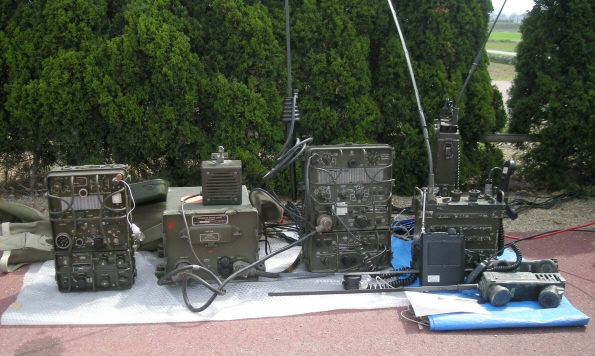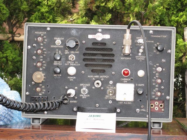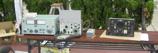JH4TYE局がお持ちくださった機材、左端がGRC-9の先祖にあたるBC-1306、レンジの下端近くになりますが3800Kcでの運用ができます。 GRC-9をお持ちの方は沢山おられると思います。 毎回の開催において電源および電源ケーブル類は用意していますので、この場を利用され是非とも稼動をしてみてください。