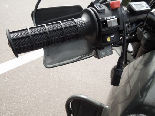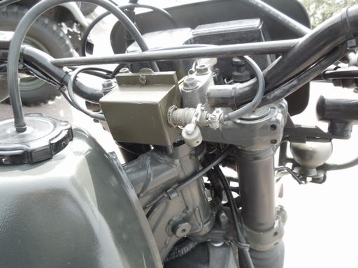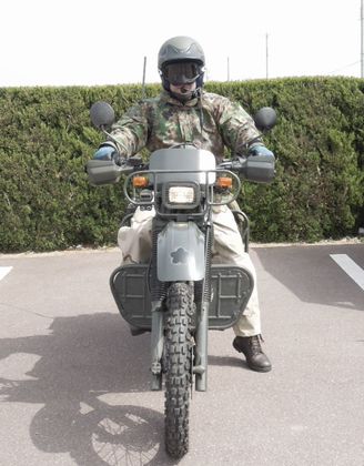 ヘルメットシステムは、ケテルのKT007、写真のダイナミックマイクとヘルメットに内装の8Ωスピーカです。 前輪泥除けの微かな桜マークにも注目です。 |