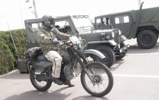 JN3LPRの陸自仕様偵察オートです。 写真左手にRT841/PRC-77、AT-892 ショートアンテナです。 |