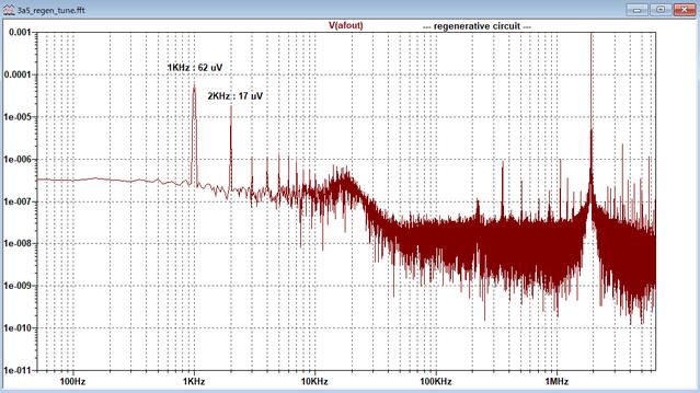 emf(起電力)200uVのAM変調波(キャリア約2MHz、ベースバンド1KHzサイントーン)を当該回路アンテナ端子に入力し検波後のAF1KHzトーン成分のレベルをFFTで観測し比較しています。