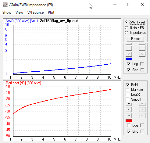 防砂壁への仮設想定ビバレージアンテナのシミュレーション(その1) より、海水による反射はビバレージアンテナにとっては非常に辛い要素であることがよく分かりましたので、その影響から逃れたアンテナを考えたものです。| ・ 形式として進行波型アンテナは諦めない | |