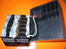 この様な外観姿をしたバッテリーです。上位置にある6ピンコネクタで12V1.8A(@0.35A放電率)が2系出力されており24Vでの使用は外部で直列接続が必要です。